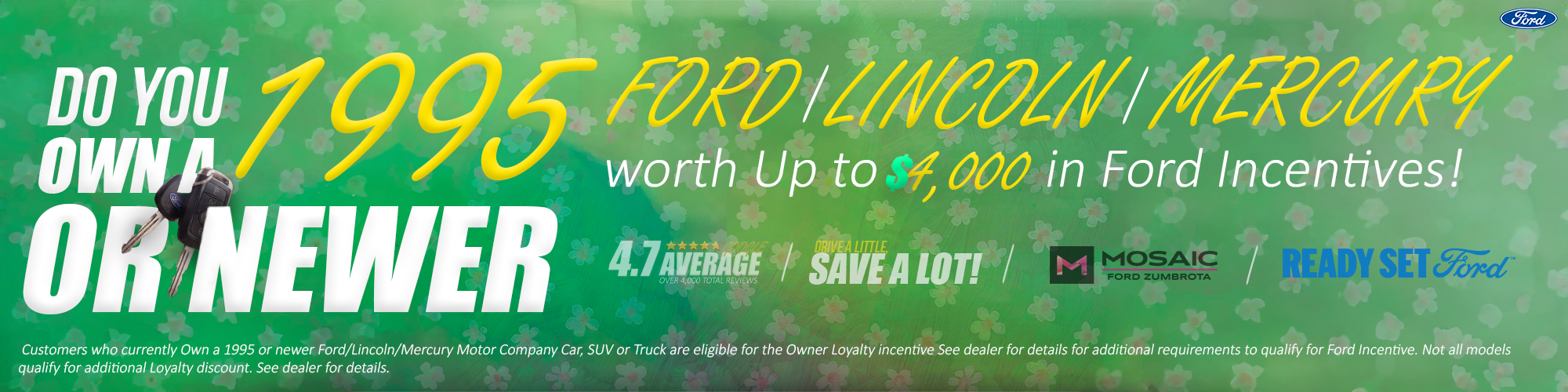 If you currently own a 1995 or newer Ford, Lincoln, or Mercury, you could qualify for up to $4,000 in exclusive Ford incentives, making it the perfect time to upgrade.