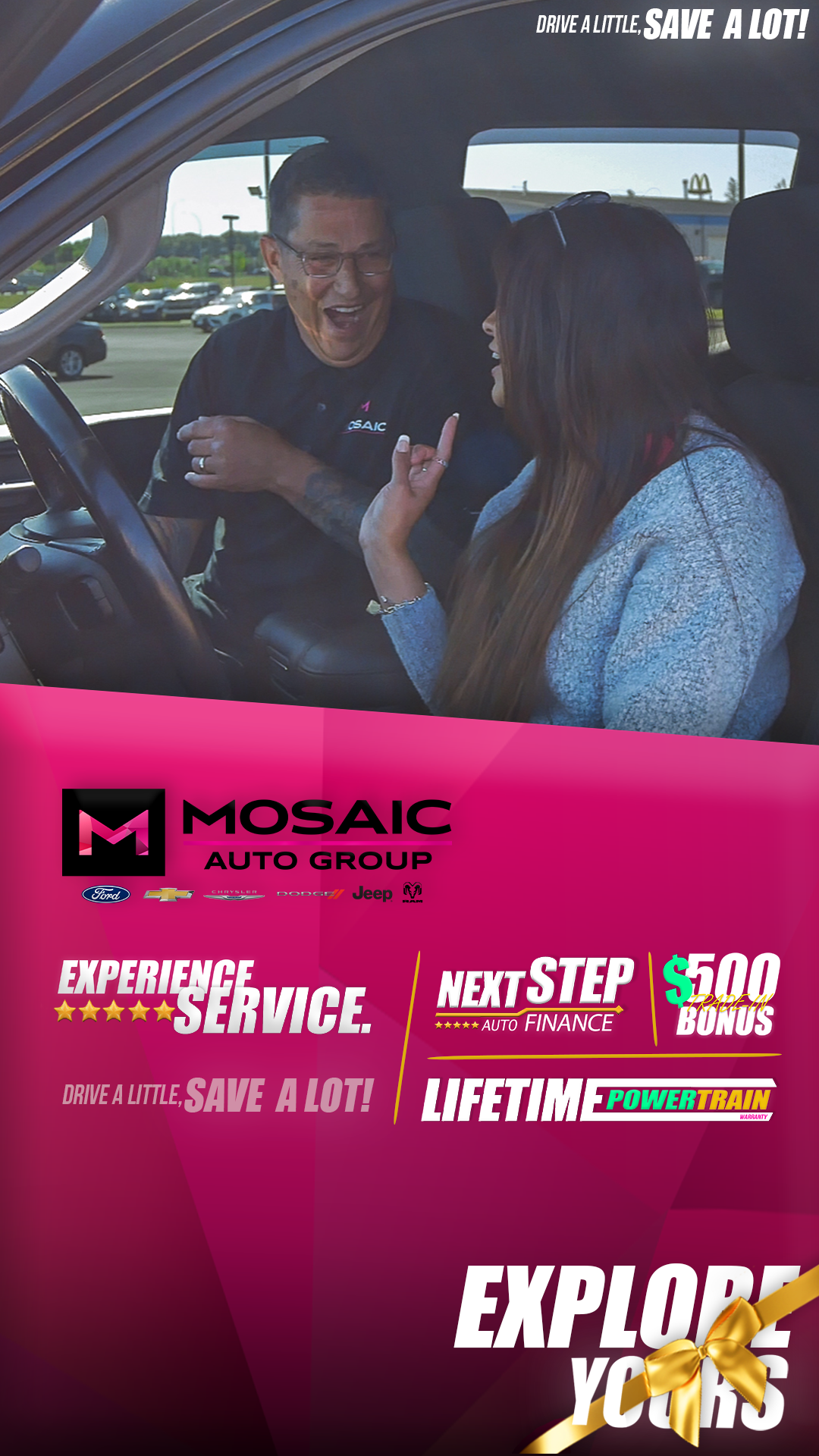 At Mosaic Auto Group, we believe car buying should feel comfortable, transparent, and centered around you. From the first conversation to the moment the keys are in your hand, and every mile after. We're here to make sure you feel confident in your decision.